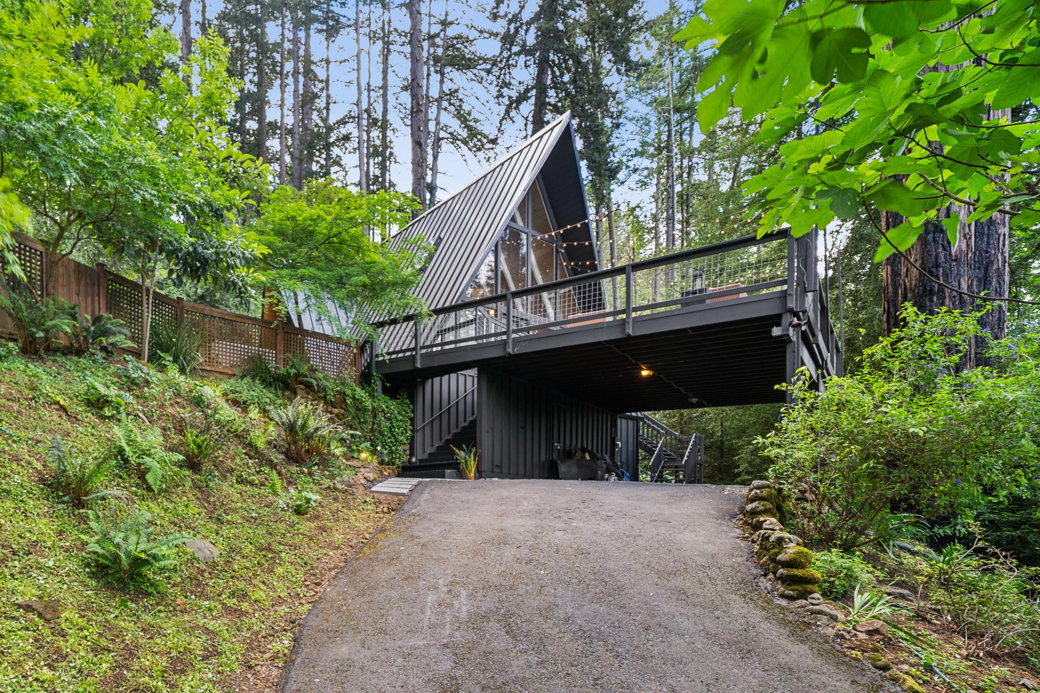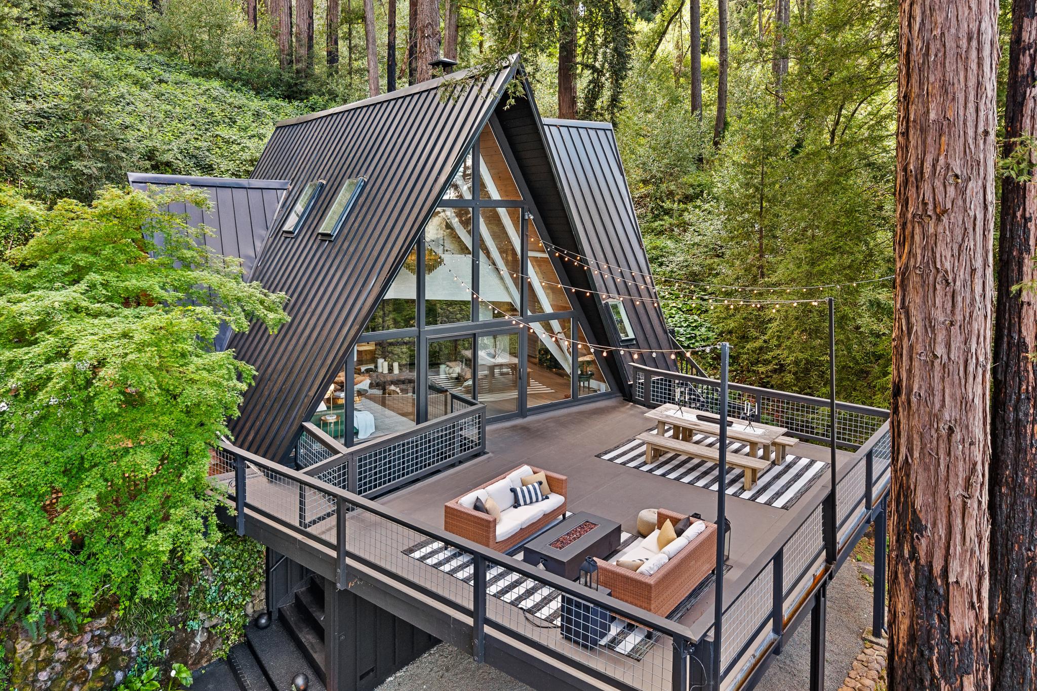 Summit House is a private 1969 A-frame rental at the summit of Mount Veeder in Napa Valley, offered exclusively for 31-night-minimum residencies. Three bedrooms on several private acres of ancient redwoods at 1,800 feet, with hot tub, infrared sauna, meditation trail, and Starlink internet — 15 minutes from downtown Napa.